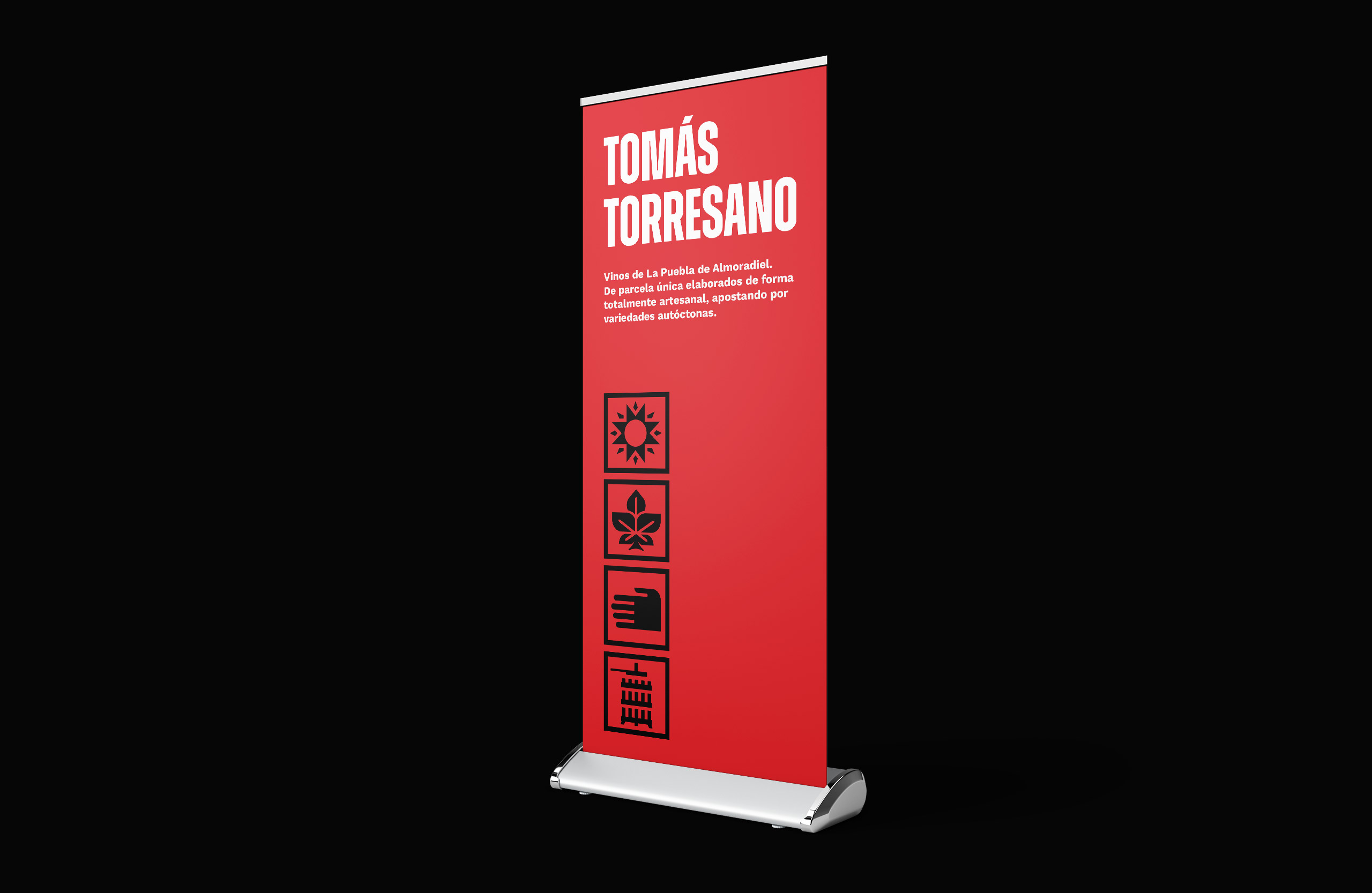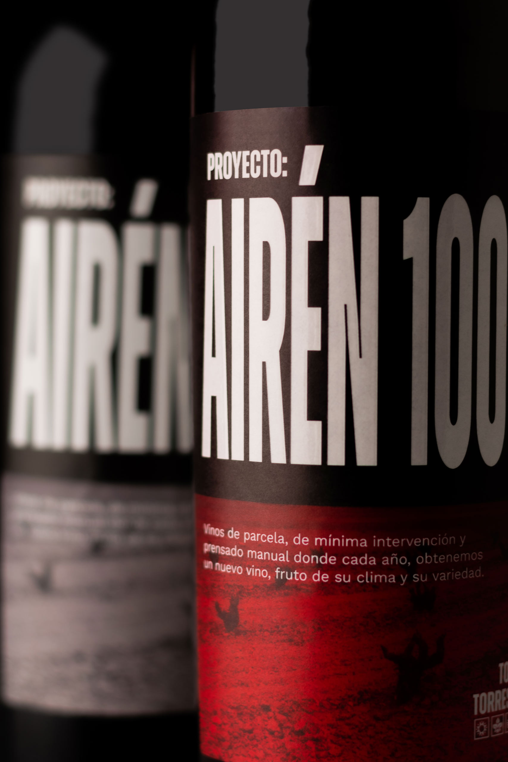 Para el desarrollo de toda la gama de Packaging de sus vinos “proyecto”, quisimos continuar con la imagen impactante que ya pensamos para toda la marca, añadiendo tipografías de palo seco de lado a lado como diciendo “Fuck yeah!” y una imagen de los viñedos de Tomás, montados en distintos colores para seguir manteniendo ese espíritu de “marca dinámica y líquida”.